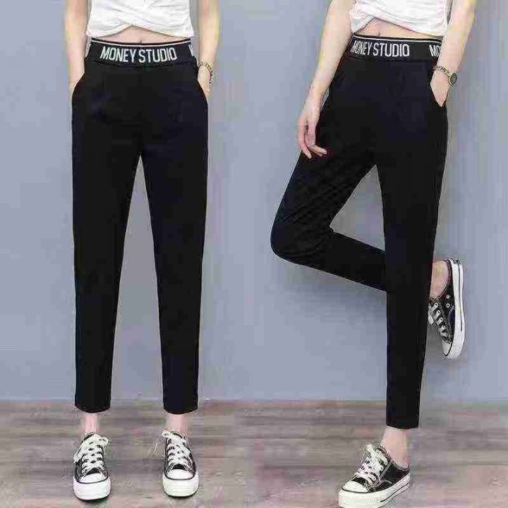 上新全清:3.9一件韩版松紧腰字母垂感宽松百搭哈伦裤...