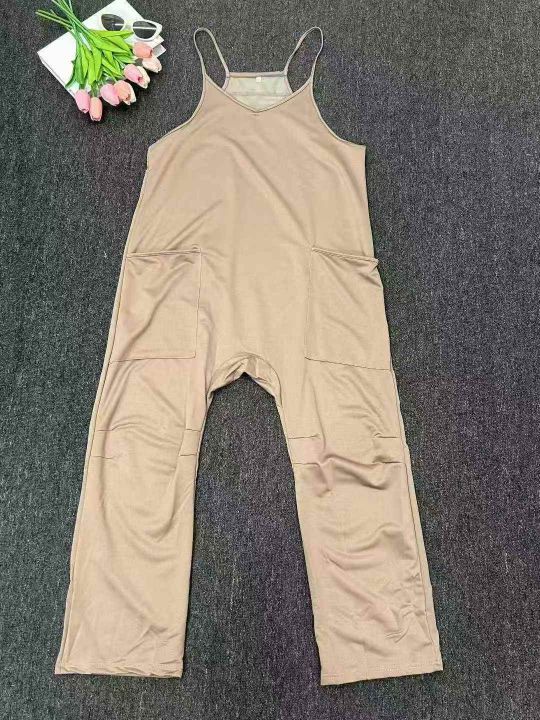 欧美大码V领胖MM浅绿色口袋宽松休闲吊带连体裤,独立包装,700件,S-2XL,全清6.8分货➕1