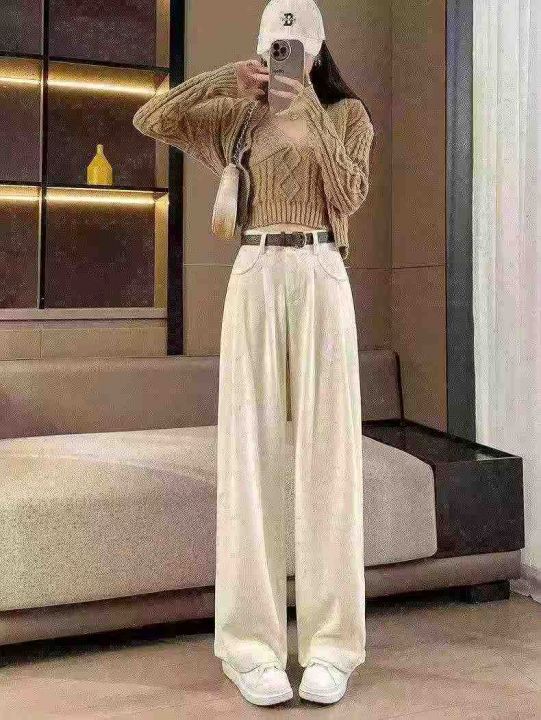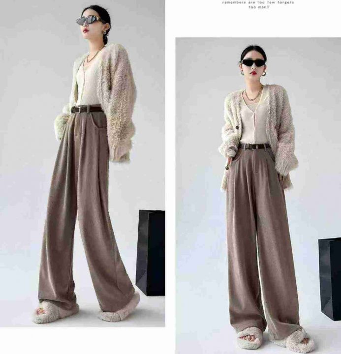 春秋新款宽松百搭网红复古美拉德高腰垂感直筒休闲阔腿...
