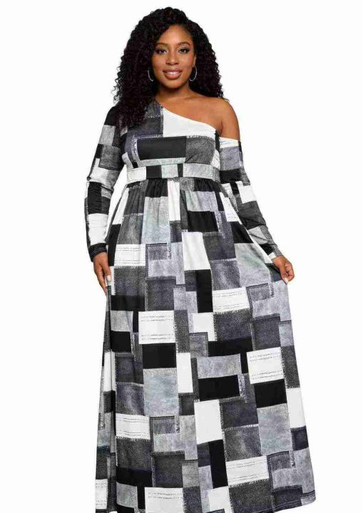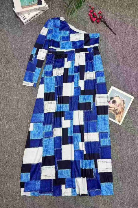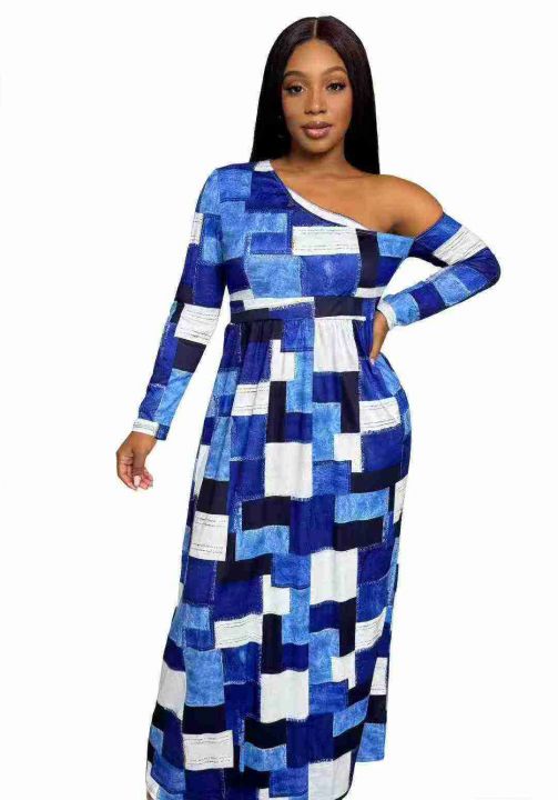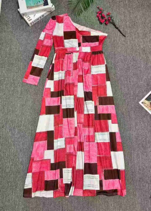 欧美时尚个性斜单肩长袖连衣裙,整款三色,数量:113件,码数:XS-5XL,品质好,拉链式独立包装。