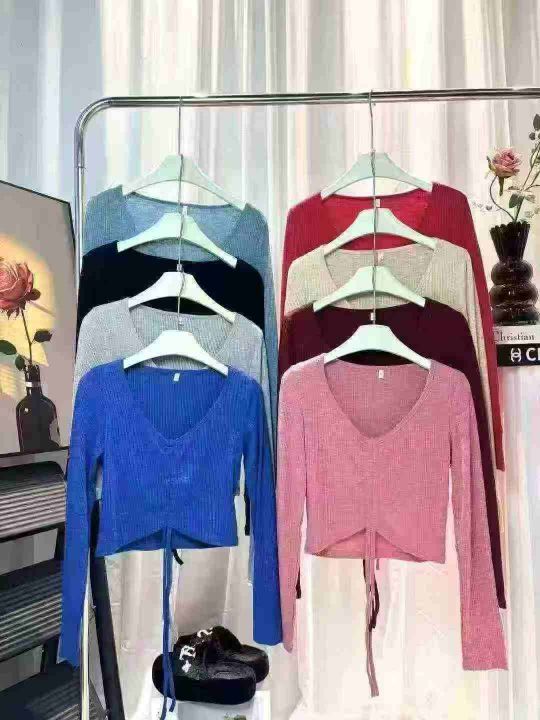 880件春装新款性感辣妹短款抽绳T恤长袖小众款高腰露脐装V领港风潮女上衣,抽绳设计可调节,含棉亲肤柔软高弹力,单款多色,尺码S-2XL,颜色相对均匀,独立拉链包装,几乎零瑕疵!福利秒杀价5.8