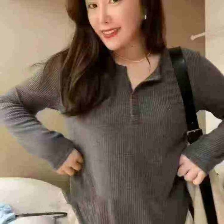 1200件韩系早秋新款宽松V领显瘦内搭打底衫上衣,含棉...