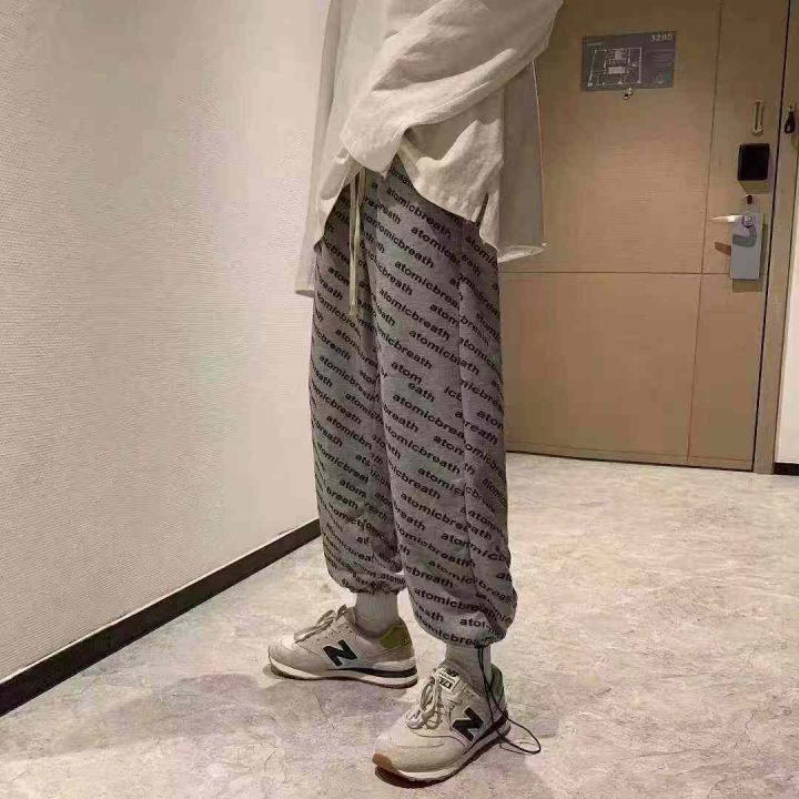 男装港风新款宽松潮牌小满标直筒阔腿束脚裤,数量545...