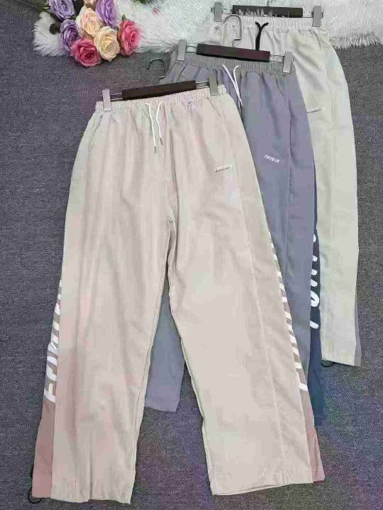 423条,港风休闲裤女夏季新款宽松阔腿裤薄款抽绳束脚拼接学生运动裤,独立包装,码数S-3XL,全清7.8元$,分货+0.5