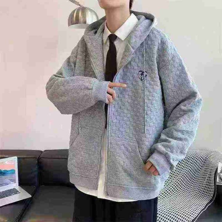 [月亮]:9.8清187件(不分货)[月亮]:华夫格情侣款连帽拉链卫衣外套[月亮]...