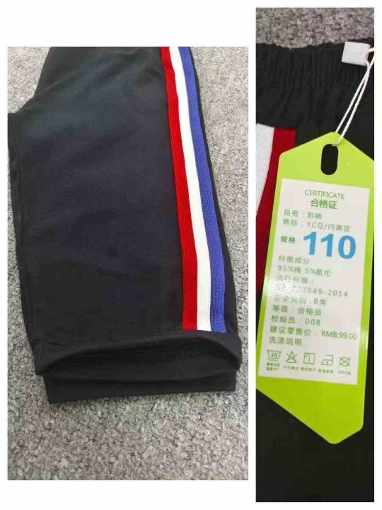 品牌男童女童三道杠条七分裤,数量800件左右,尺码110--160,独立包装带吊牌,货品干净整洁