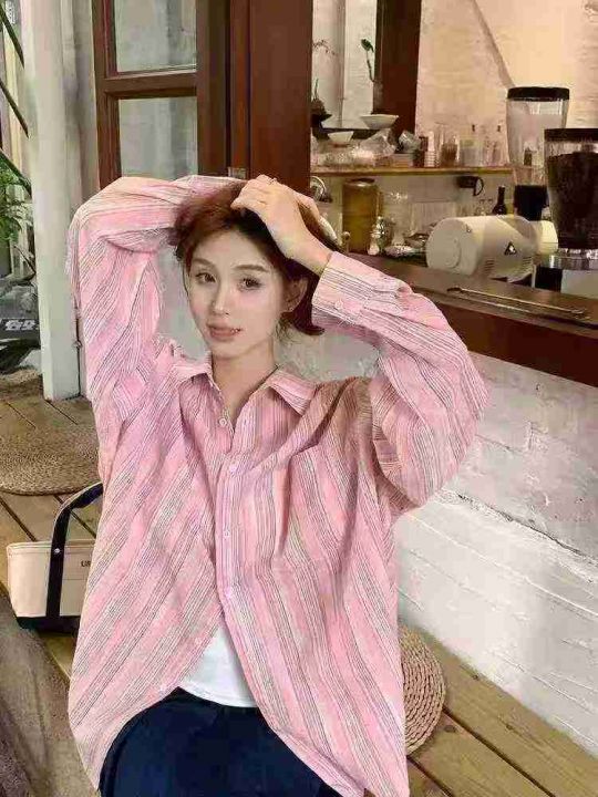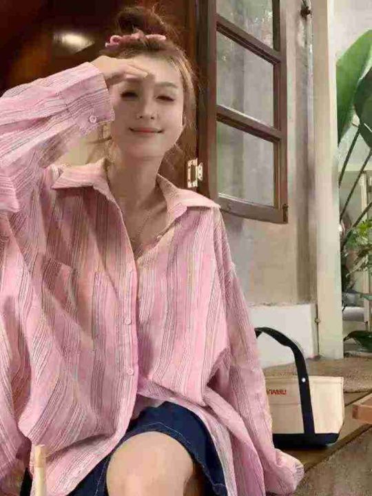 [月亮]:夏季薄款条纹韩系防晒开衫衬衫