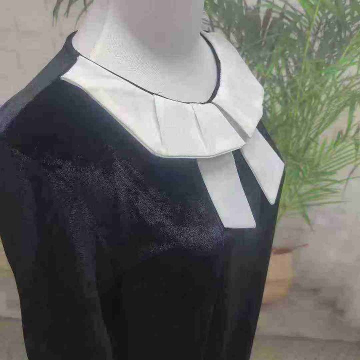 5.5元[爱心][爱心] 赫本风黑色金丝绒长袖连衣裙,独立包装,白色衣领串色,码数s-xl,数量115件左右。