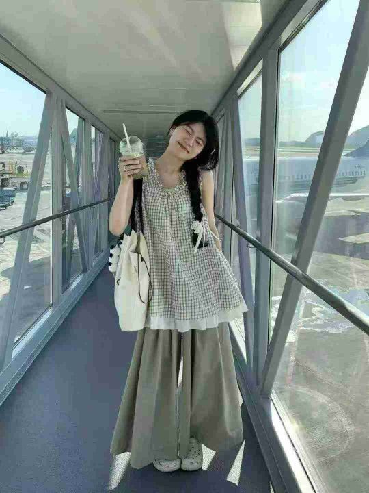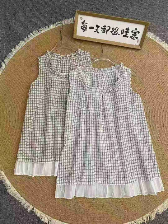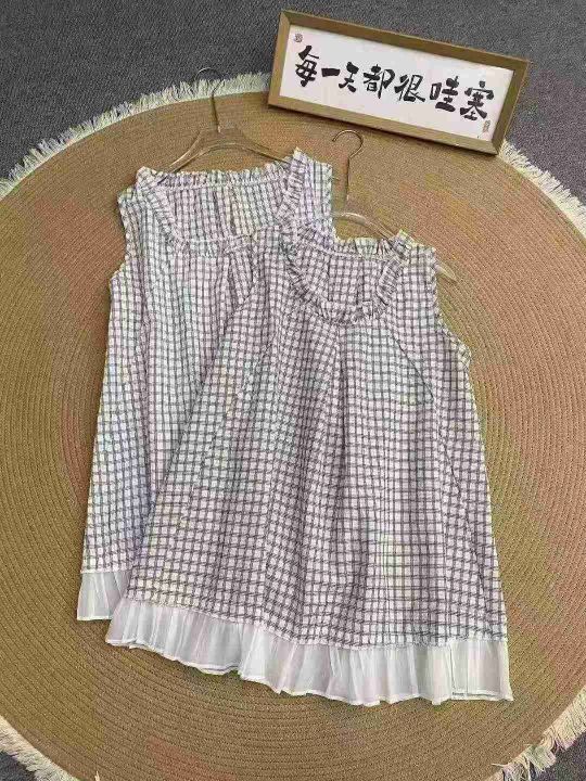 韩系复古无袖上衣170件6.9,格子花领口,拼接设计,码...