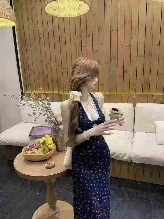 洋气显瘦蓝色挂脖法式碎花连衣裙,单款,高弹力,品质好,拉链式独立包装 数量40件 码数1-4码 全清6.8