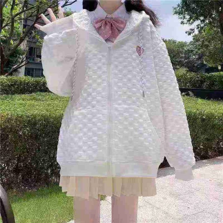 [月亮]:华夫格情侣款连帽拉链卫衣外套