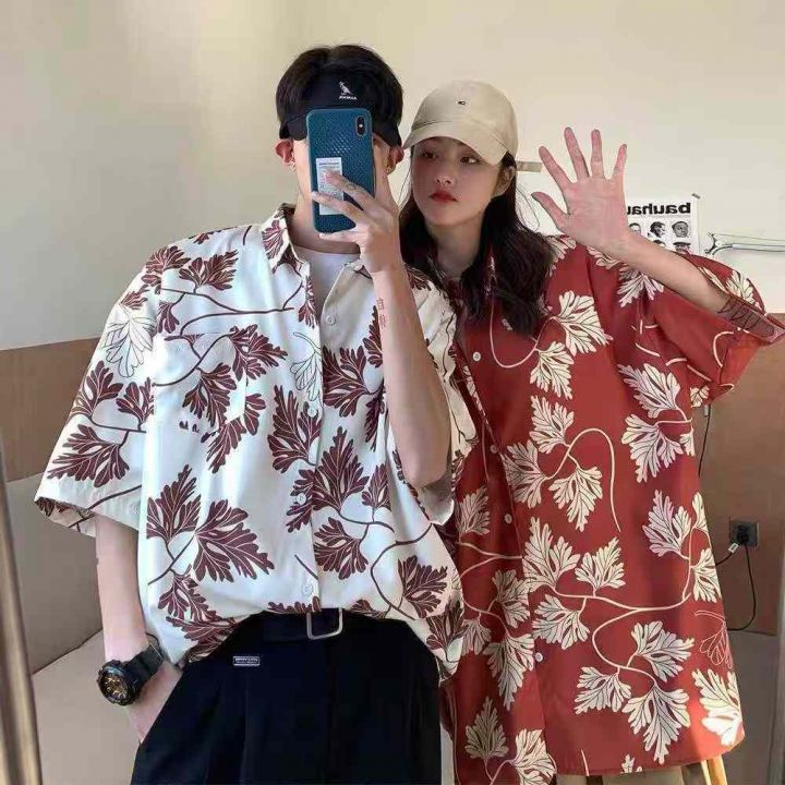 ☕️男女同款花衬衫夏季港风日系短袖衬衫韩版潮流宽松...