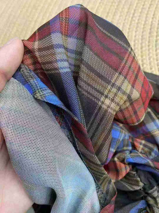 美式复古格子网纱短袖86件6.9,面料柔软,有弹力,褶...