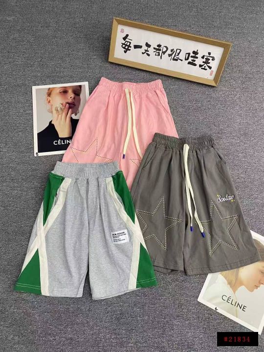 童装系列款运动短裤493件5.8,松紧腰,有口袋,图案印...
