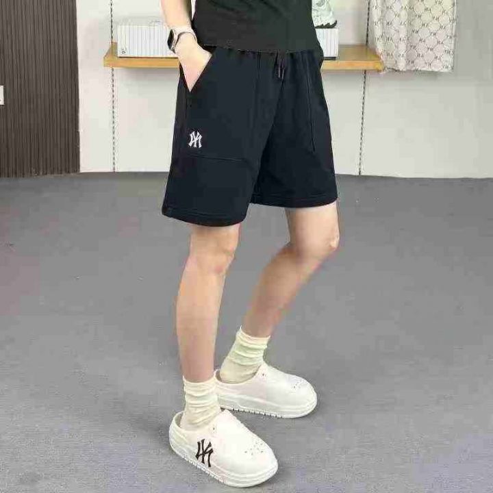 6.8清416条男百搭拼接休闲潮流运动风冰丝五分短裤男士外穿宽松阔腿 单款黑...