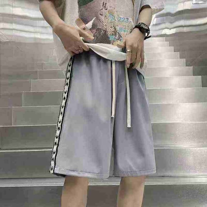 6.8清416条男百搭拼接休闲潮流运动风冰丝五分短裤男士外穿宽松阔腿 单款黑...