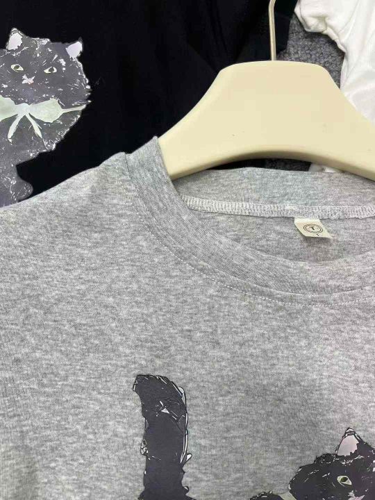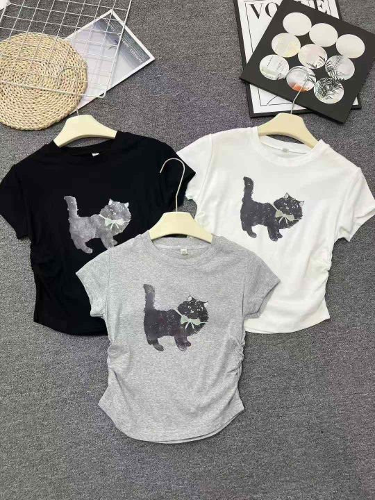☕️纯棉圆领印花修身短款上衣女夏夏季新款潮牌猫咪正肩短袖t恤261条全清7.8元,码数S到XL,单款3色,独立包装,高弹力纯棉辣妹T恤[庆祝][庆祝][庆祝]