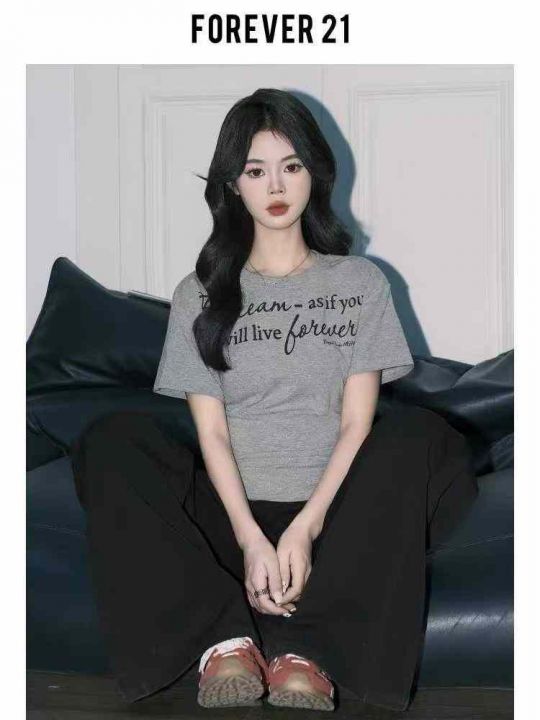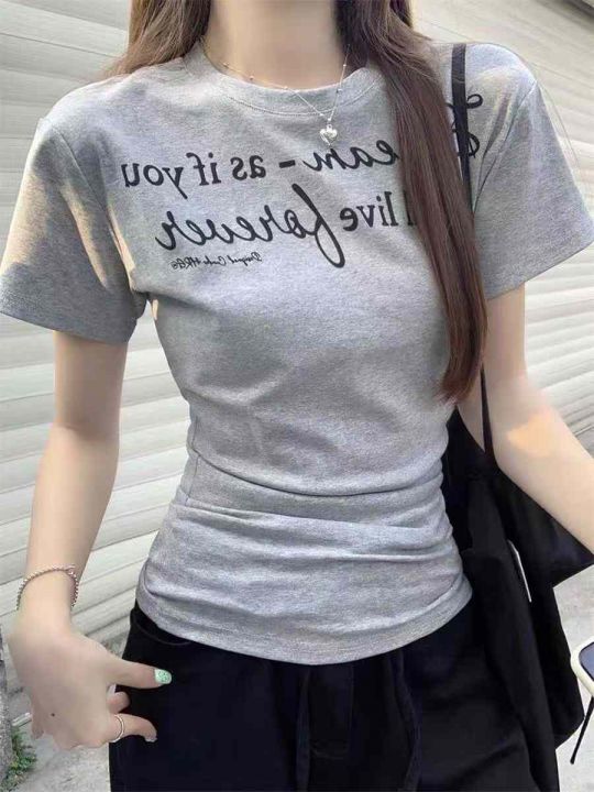 ☕️纯棉正肩英文字母短袖t恤女夏季灰色修身chic韩系设计感独特绝美上衣274件全清7.8元,码数S到XL,单款灰色,纯棉整款短袖T恤[庆祝][庆祝][庆祝]