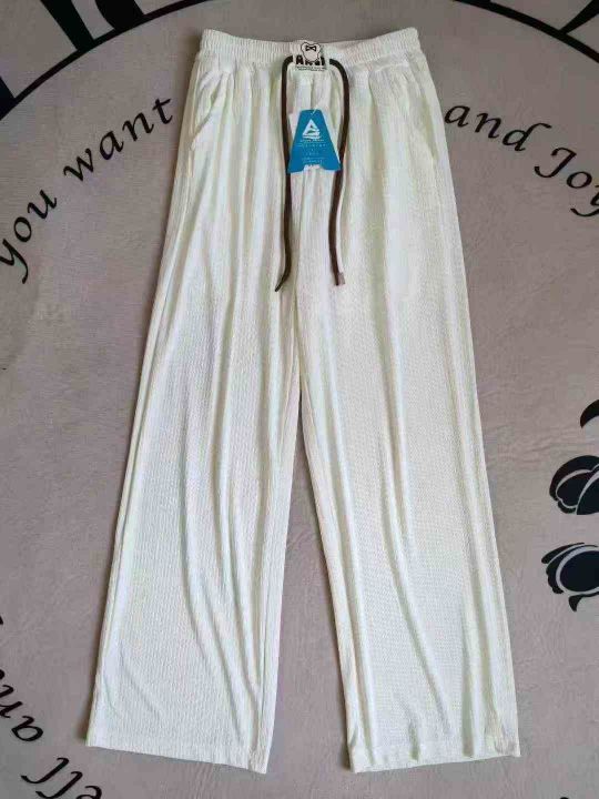 1000件左右品牌中大童休闲直筒冰丝裤,尺码110--160,整款三个色, 面料冰凉垂感足,白色带内衬防走光,内里包边,独立包装带吊牌
