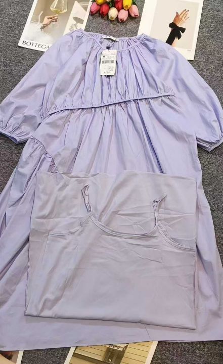 韩版宽松大版型不规则设计感温柔显白泡泡袖吊带两件套长款连衣裙,[爱心]360套左右,S胸围114,码数S-XL,穿80-160斤,万佳档口货,原包装️无瑕疵,[666]实体店品质,分货加一