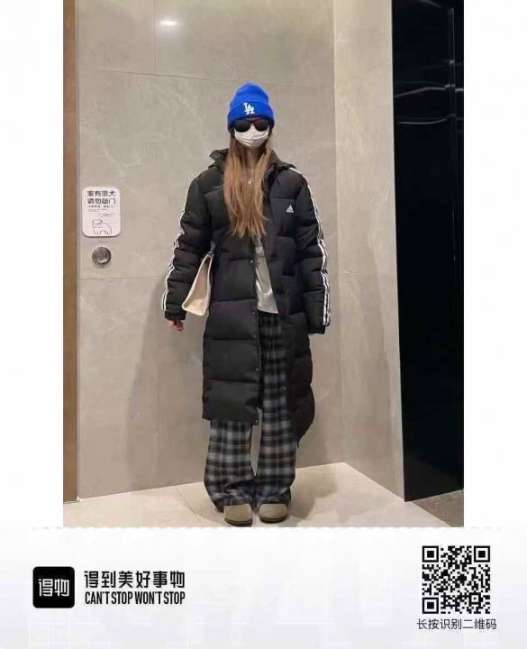 得物下架!仅有100件啊迪达斯长款男女同款白鸭绒羽绒服!质量太好了,三标...