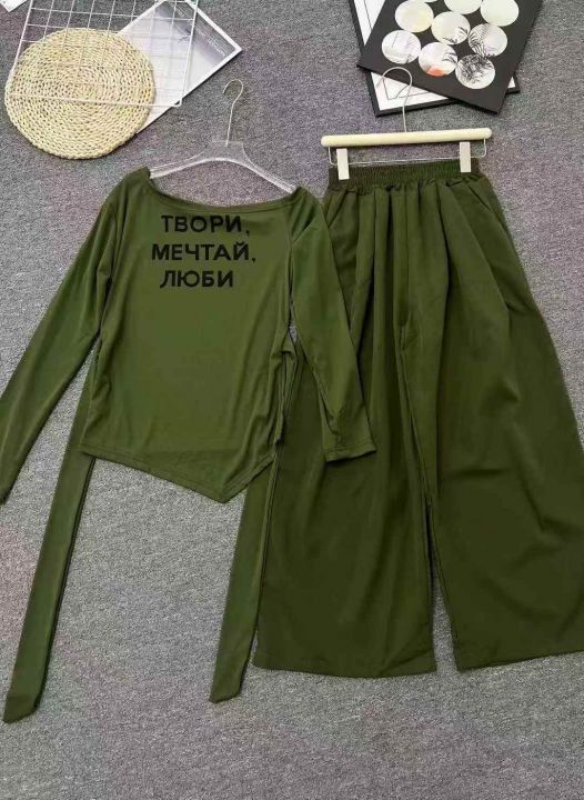 ☕️春秋穿搭休闲运动一整套女装短袖上衣阔腿裤两件套...