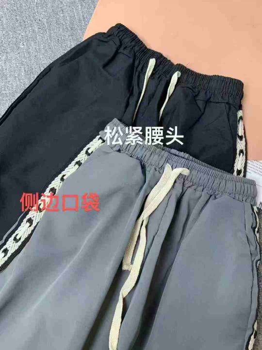 6.8清416条男百搭拼接休闲潮流运动风冰丝五分短裤男士外穿宽松阔腿 单款黑灰两色 码数M-5XL 独立包装