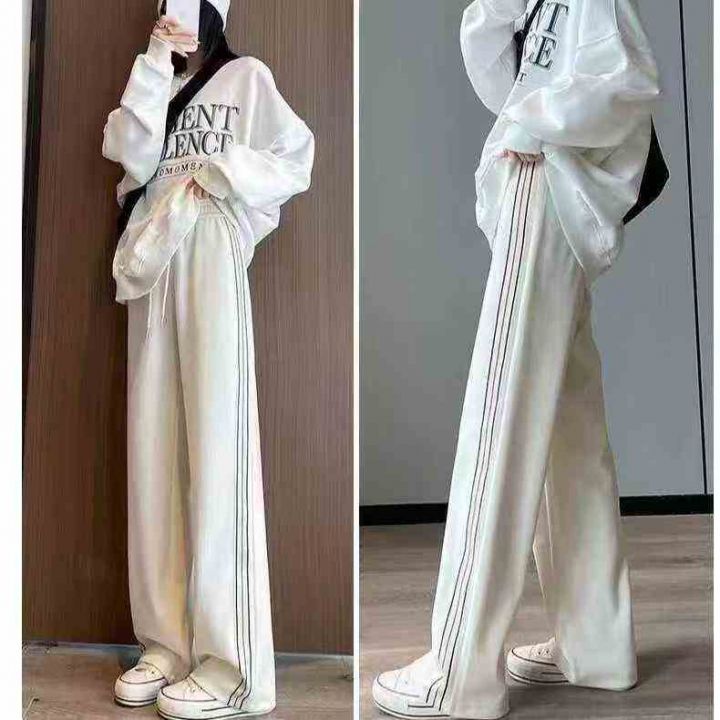 ☕️加绒黑色阔腿卫裤条纹裤子男直筒宽松阔腿休闲裤男装运动卫裤27条全清8....