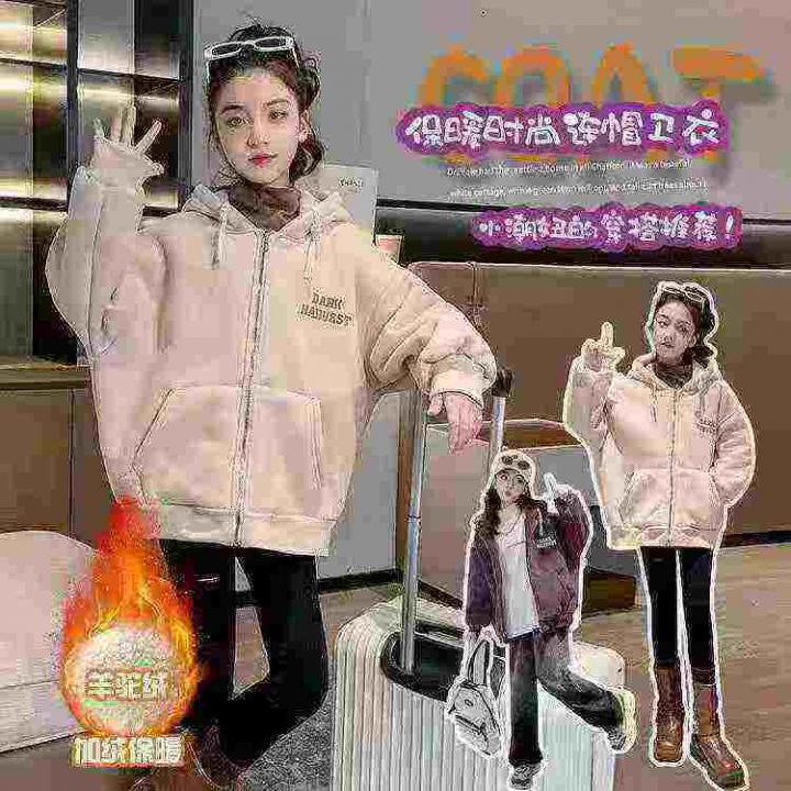 女童加绒外套春秋季薄款时髦洋气中大童装连帽拉链开衫...