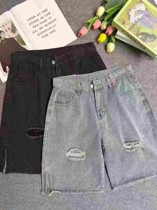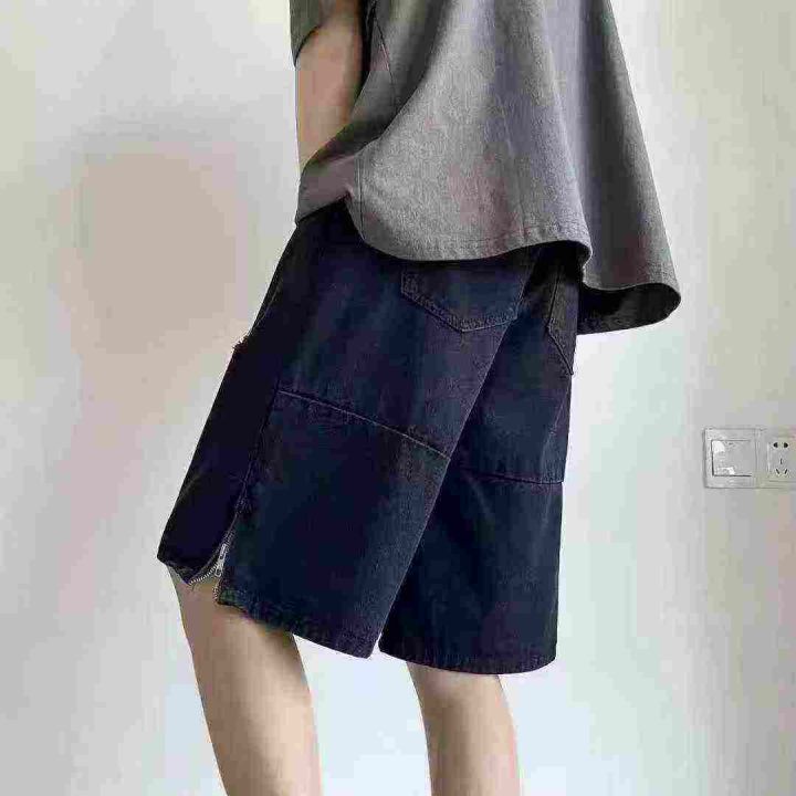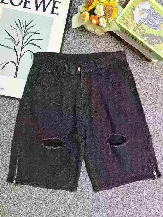 破洞牛仔短裤男夏季美式高街vibe五分裤潮流痞帅拉链开叉休闲裤子,独立包装,208件,尺码M-3XL