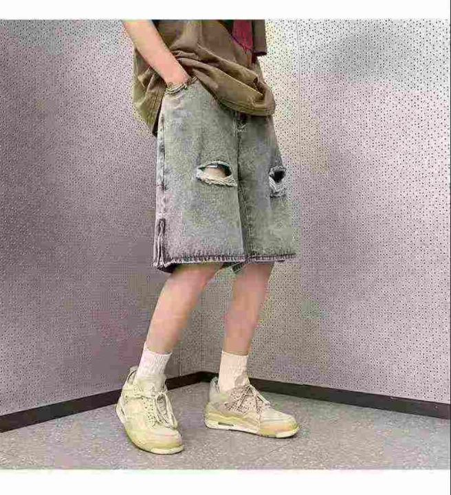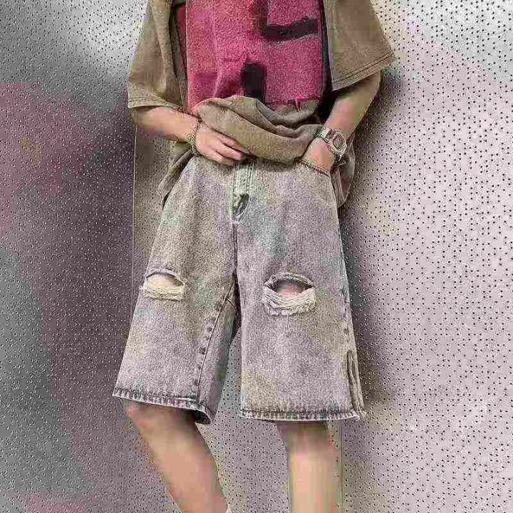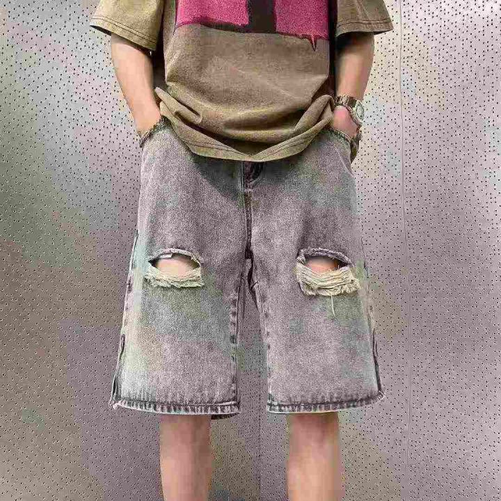 全清9.6破洞牛仔短裤男夏季美式高街vibe五分裤潮流痞...