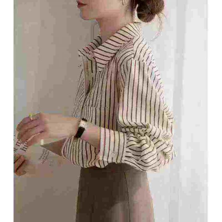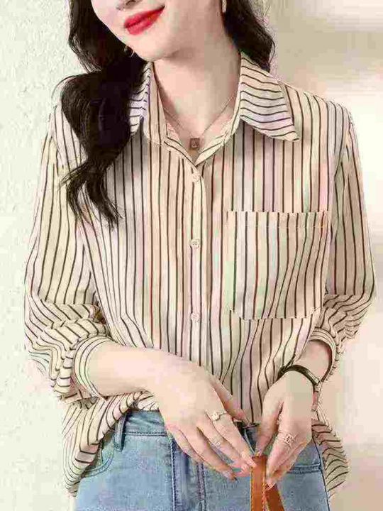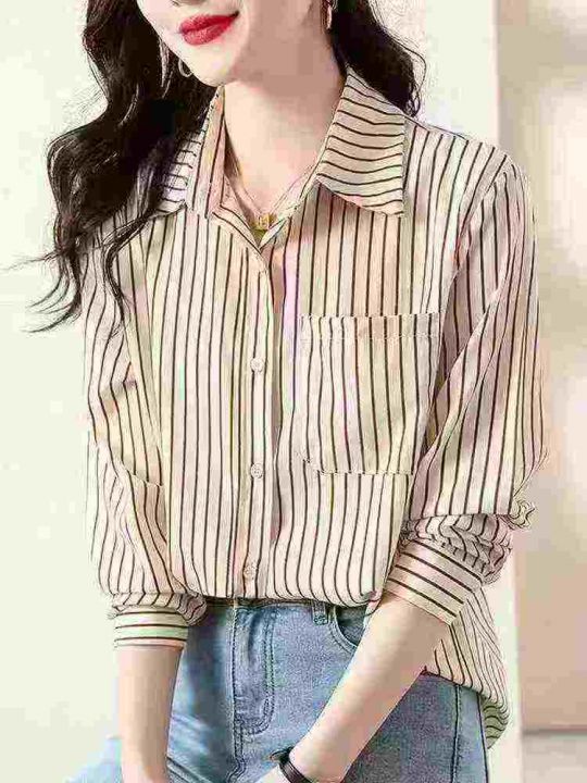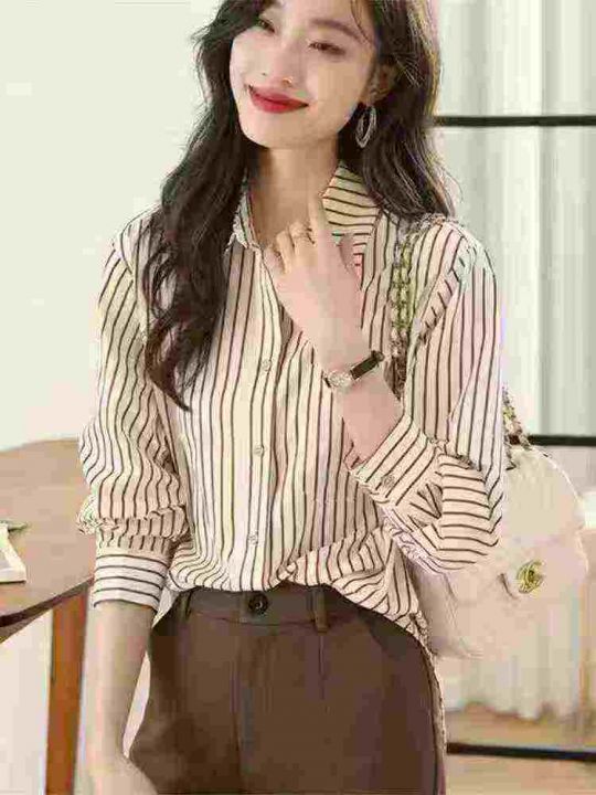 条纹衬衫女士装早春秋2026年新款爆款时尚小个子洋气上衣长袖衬衣,1到4码,独立包装,487件,独立包装,货品干净,7.8清,分货加1