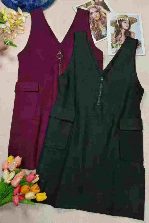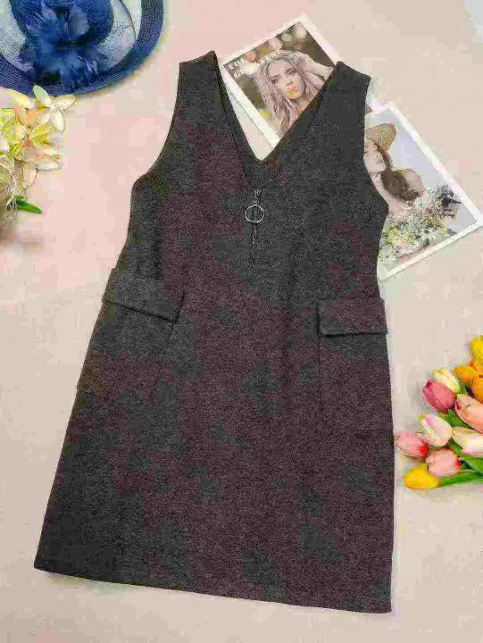 590条单件春装新款宽松显瘦无袖连衣裙女时尚气质v领毛...