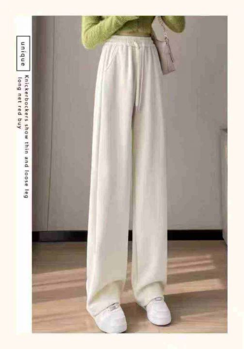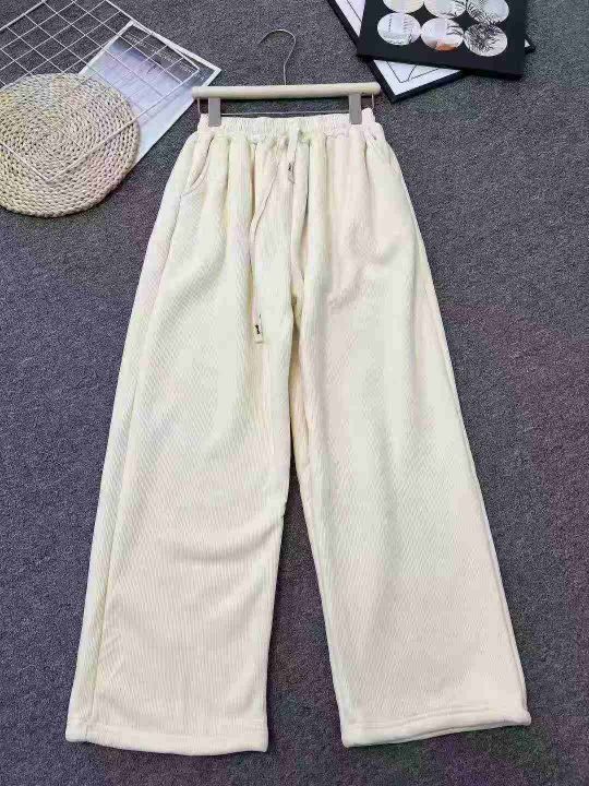 ☕️杏色加绒雪尼尔阔腿裤女秋冬直筒休闲裤142条全清8...