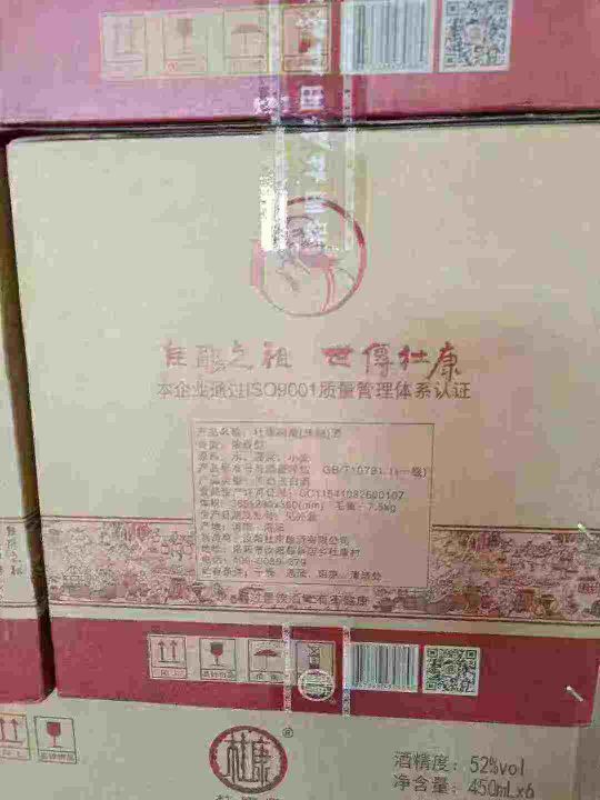 这款酒卖的是口感,不是卖的包装,极力推荐个人品尝,62箱杜康御藏,洛阳杜康总厂生产,100元一箱,一箱起发,52度,450毫升,一箱6瓶,一级纯粮酒!。 货号:29195