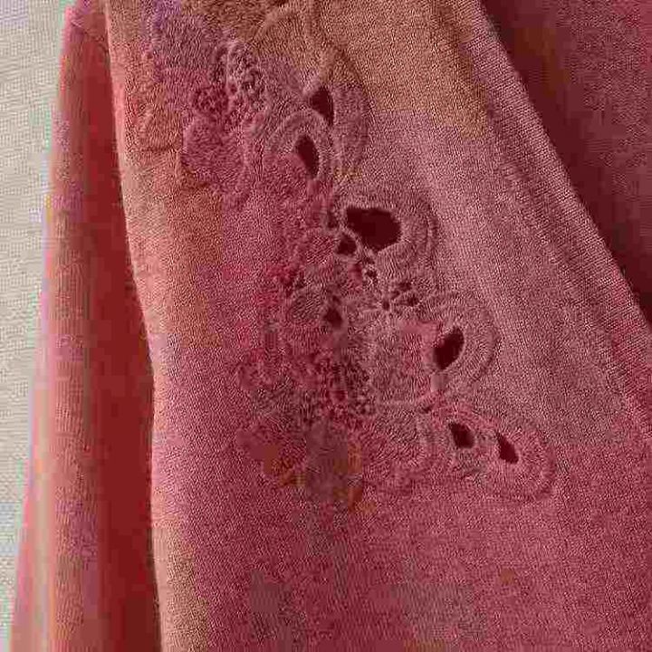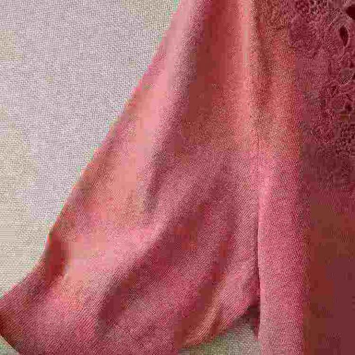 外贸原单春秋女士开衫提花西瓜红半袖中袖V领修身收腰...