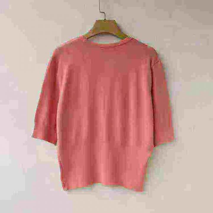 外贸原单春秋女士开衫提花西瓜红半袖中袖V领修身收腰百搭针织衫,高弹力,独立包装,Xs-L码,750件,全清2.8,分货➕0.5