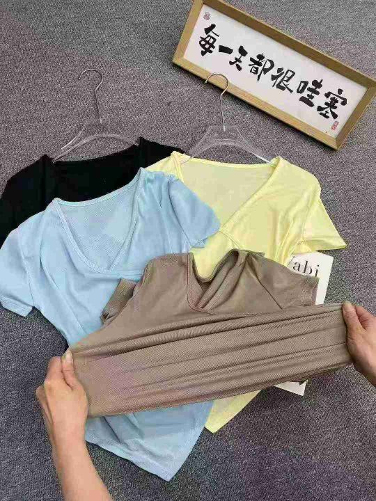 不规则冰丝短袖596件5.5面料柔软,高弹力,褶皱收腰,...