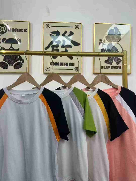 天猫在售款880件左右高品质夏季常规版纯棉插肩拼色休闲百搭短袖,码数S-2XL,单款四色,十件一包装