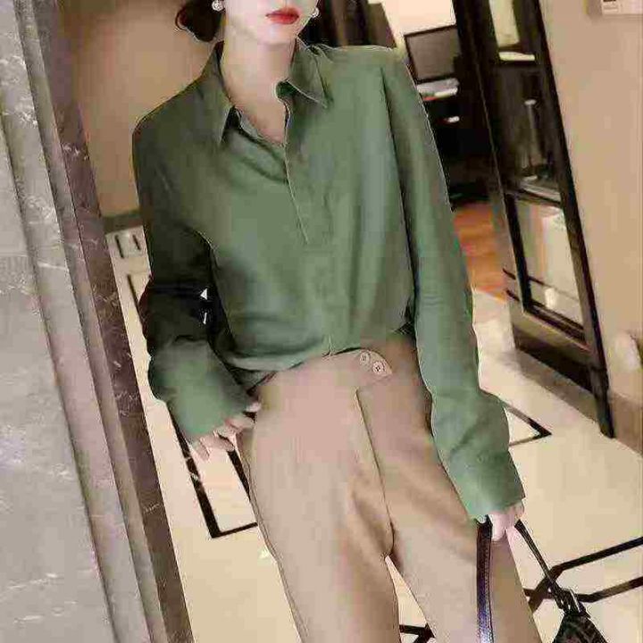 舒适弹力长袖薄款衬衣女外穿时尚简约宽松显瘦POLO领套头上衣,数量1960件,...