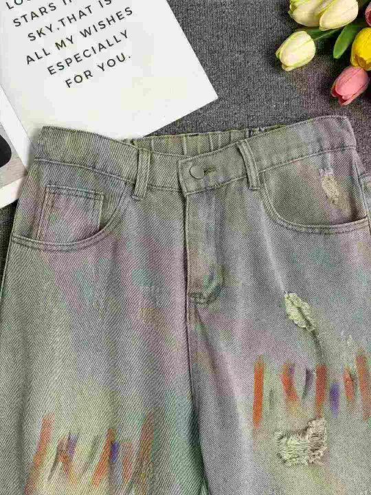 2025夏季新款美式复古水洗破洞男士牛仔裤做旧涂鸦高街个性直筒裤,独立包装带吊牌,数量371件,尺码M-3XL