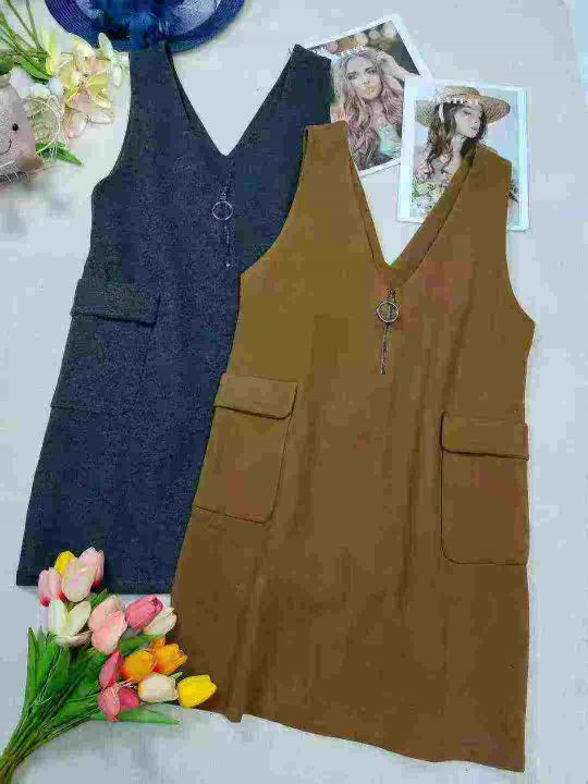 590条单件春装新款宽松显瘦无袖连衣裙女时尚气质v领毛呢背心裙中长款 独立包装 M一2XL 9.9清 分货加一
