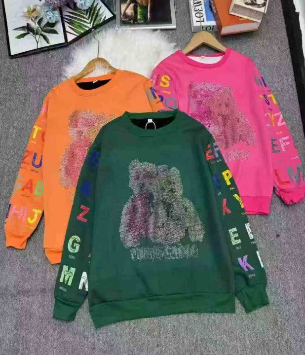 加绒加厚烫钻小熊洋气卫衣休闲卫衣,独立包装,宝宝绒,码数L-XXL(L胸围100厘米,能穿120斤内),大货黑色为主,数量1633件,分货加1,货号130#64