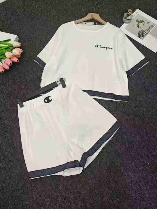 冠军休闲时尚套装女夏季2025年新款减龄小个子短裤两件套,独立包装带吊牌,微瑕微染色,清货处理价:4.5元/一套,码数M-2XL,数量280套