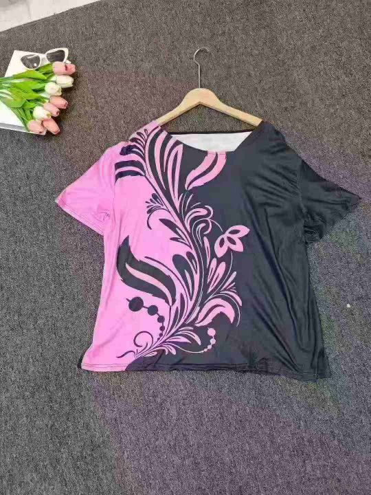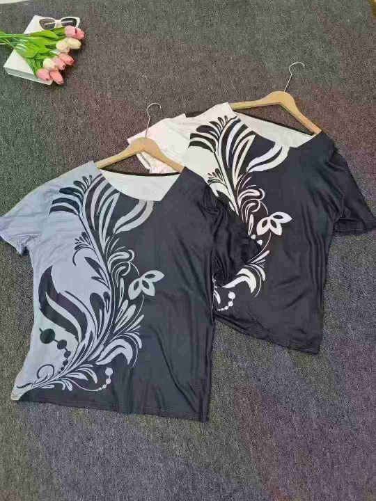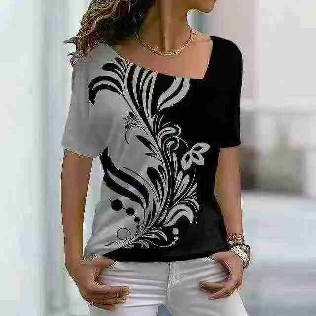 Printed Diagonal Neck Women\'s Short Sleeves印花斜领女式短袖
