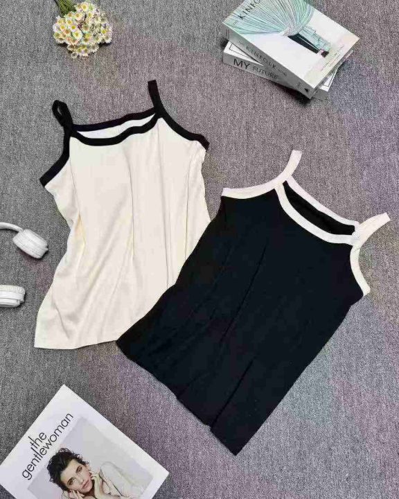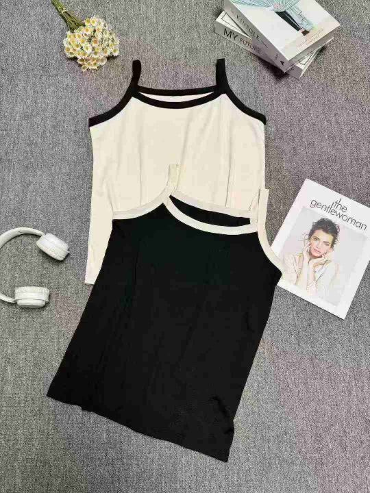 大码辣妹风无袖法式叉色吊带小衫,整款两色,高弹力,...