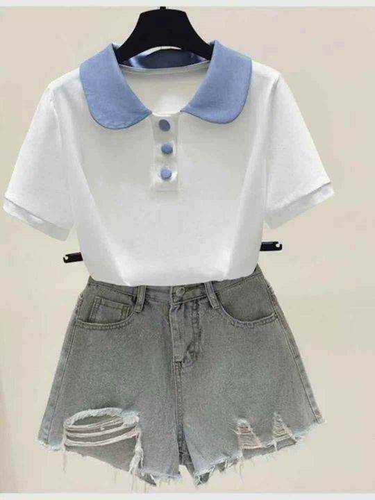 ️301件,纯棉夏季清新宽松遮肉套装女新款学院风POLO领T恤衫,独立包装,码数M-2XL,全清5.8元,分货➕0.5