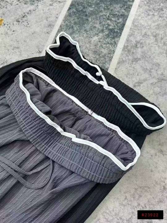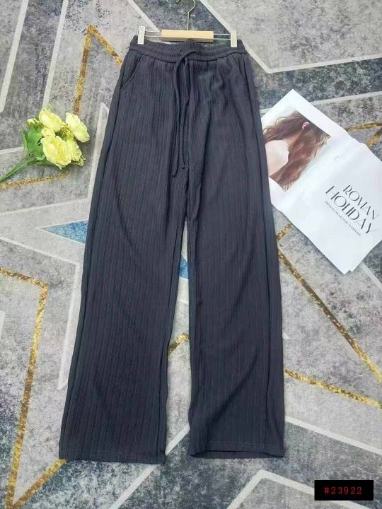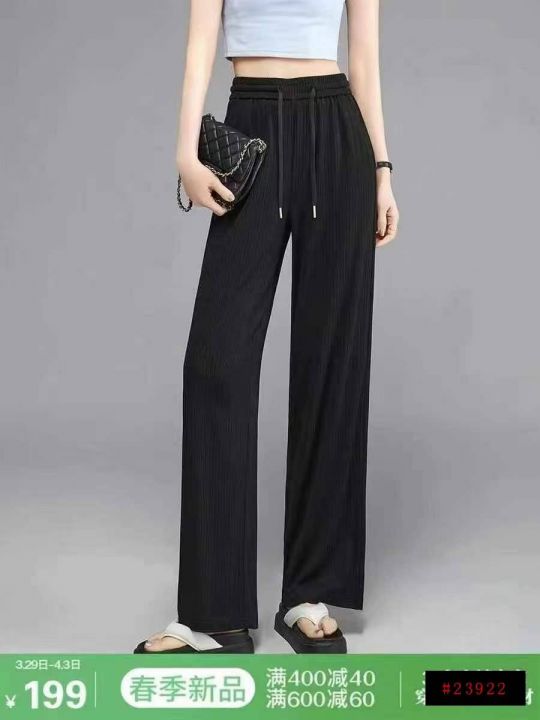 下身长裤[太阳]清11.5,500件。 春装新款女装直筒窄版阔腿裤,松紧腰,内里腰头有包边[色],有口袋带抽绳,垂感还可以,有弹力,均码,独立包装。可分货100件起12.5@_@