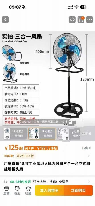 落地扇+壁挂扇+趴地扇,欧规两圆插头,