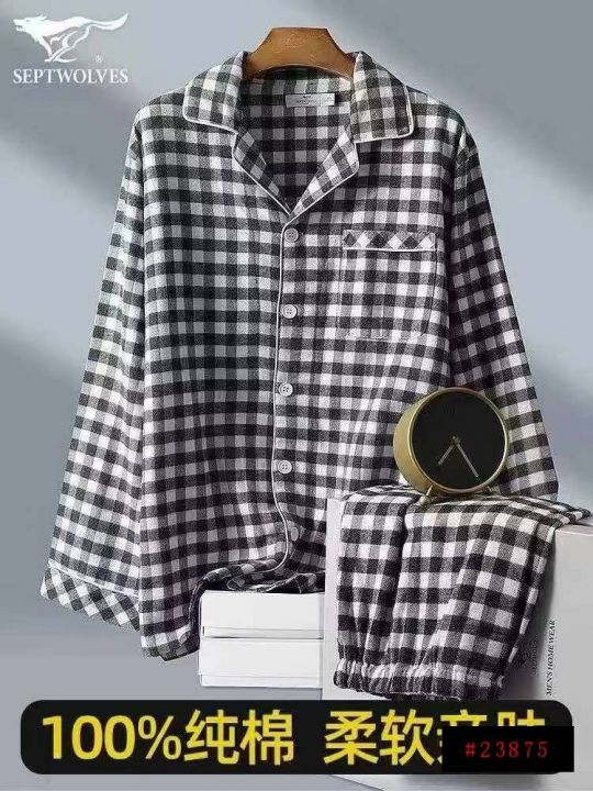 全清15.8纯棉纱布情侣睡衣男女同款春秋长袖薄款日式格子家居服秋全棉套装秋季,男女款,男款尺码偏大数量778套,M-X L,分货➕1@_@